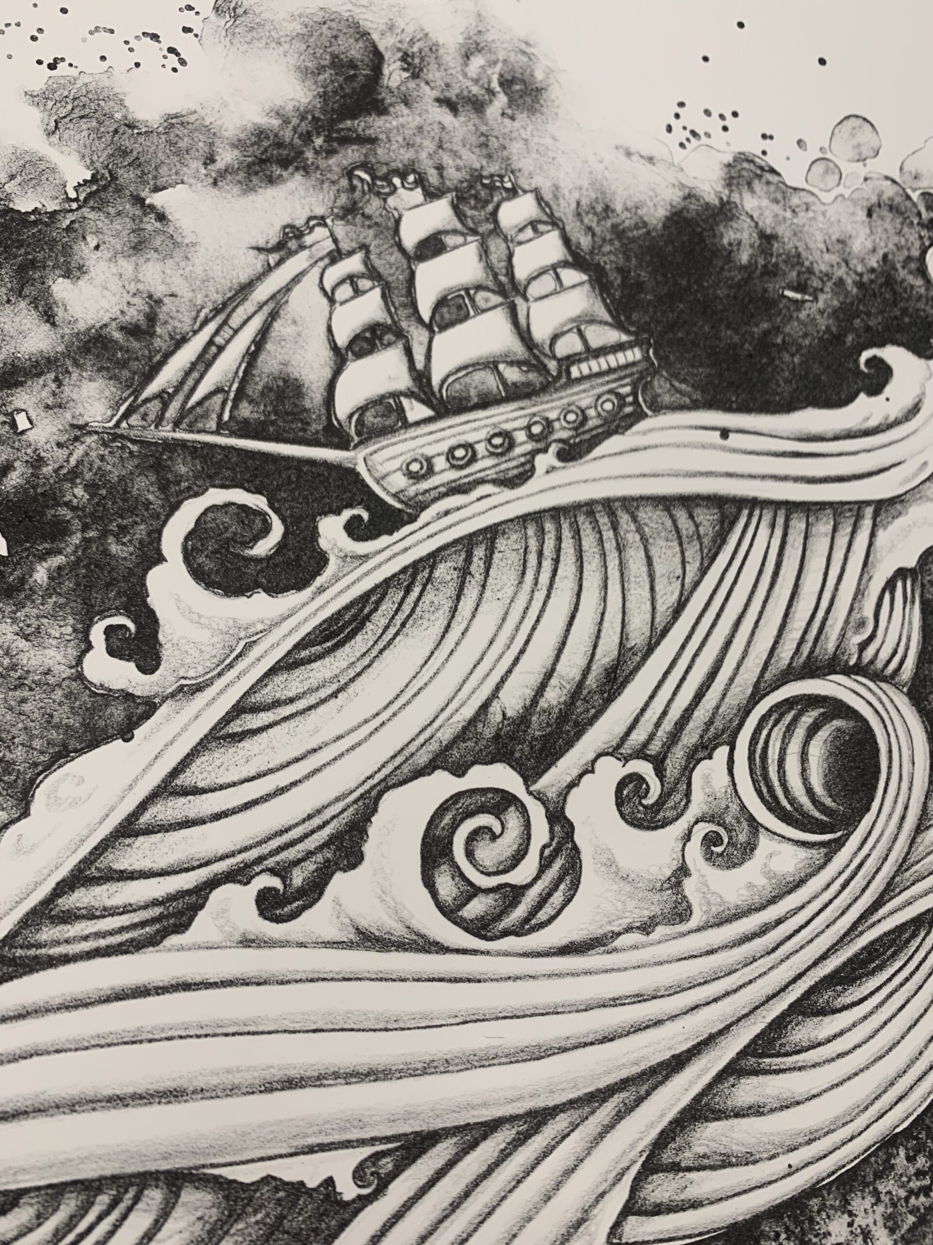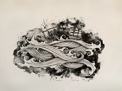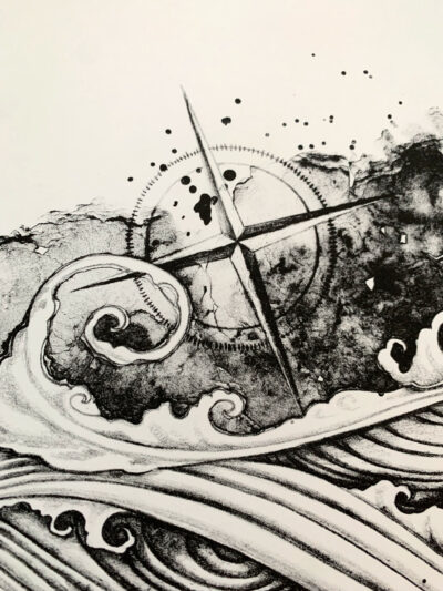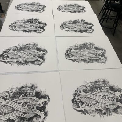 Lithography is a traditional method of printmaking where the image is drawn onto a flat piece of limestone using grease based crayons or washes, and is then etched using a chemical process. For each individual print you need to ink up the stone, register your paper on top, and then run the paper and stone through a press with 30,000lbs of pressure to transfer the image onto the paper. From this drawing I only created 5 prints, and then erased the image from the stone to never be printed again.