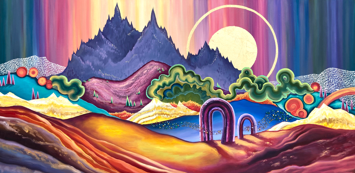 Passing through… | Oil on Canvas (beaded embellishments) | 30″ x 60″ | $3800 *Prints available
